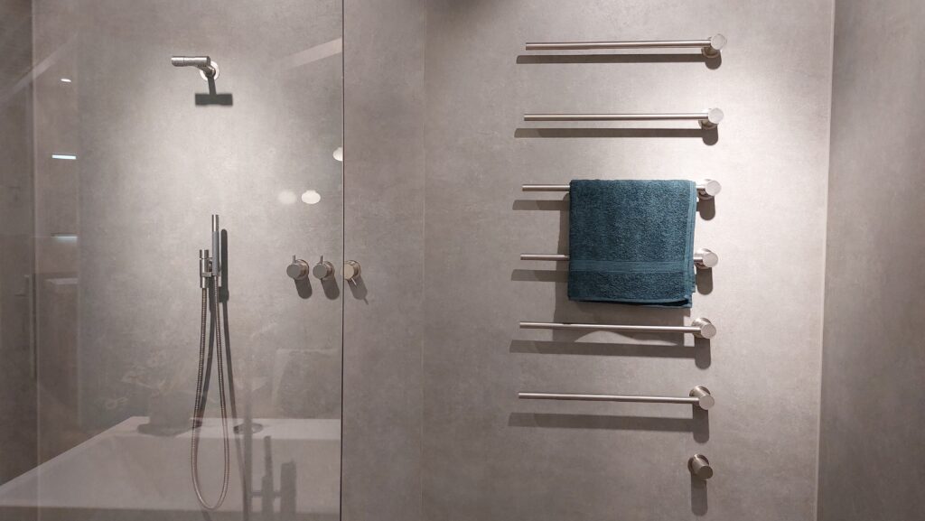 Unsere Produkte sind in verschiedenen Ausführungen erhältlich, mit sorgfältig abgestimmten Oberflächen in Bezug auf die Badarmaturen.