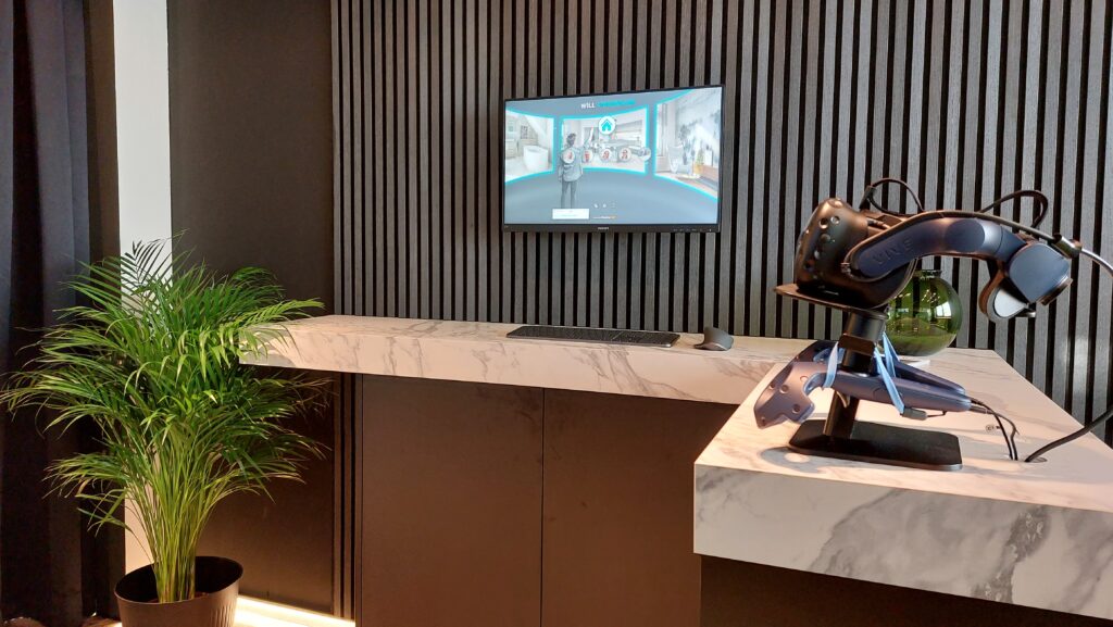 Unser VR-Raum wurde speziell entwickelt, um Ihre Badträume Wirklichkeit werden zu lassen. Mit High-End-Headsets und einer professionellen Software erleben Sie Ihre individuelle Planung in beeindruckender Realität. Jede Perspektive, jeder Blickwinkel – Sie stehen förmlich schon in Ihrem neuen Bad.